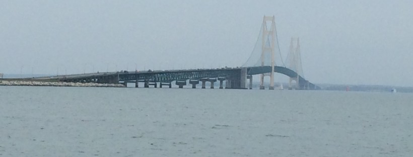 My mom and I departed from Ironwood bright and early, and drove across the upper peninsula of Michigan to the Mackinac Bridge. This is the sixteenth largest suspension bridge in the world, and it’s over a mile long. It also happens that my mom and I are not big fans of bridges.