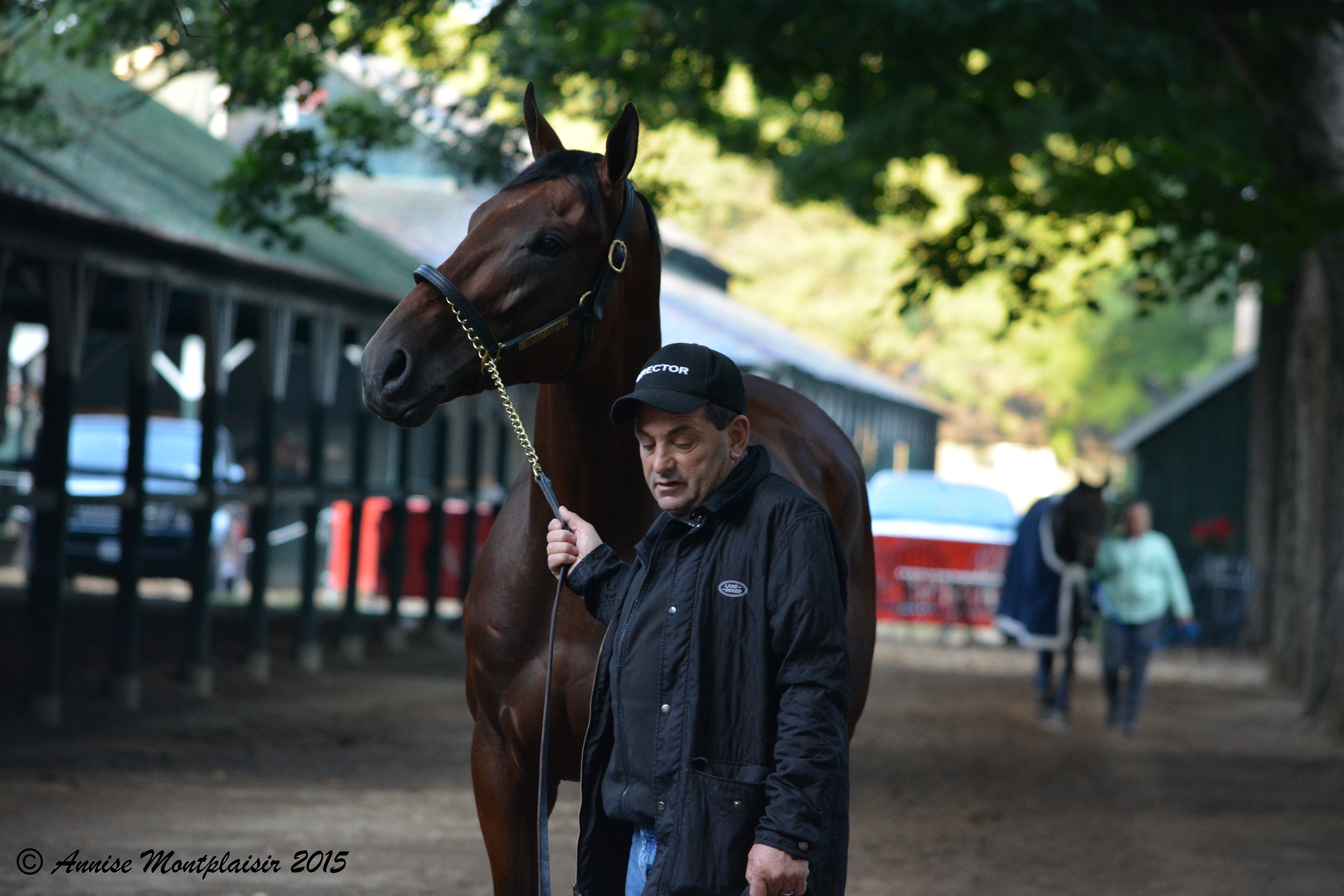 Despite the comforting familiarity, the track also emitted a different vibe. Horses and riders bustled back and forth from their barns to the track, cramming in their training sessions during the abbreviated training hours. The consistent hum of conversation evolved around the Travers Stakes and the presence of American Pharoah, who was comfortably tucked into barn 25 as he awaited yet another date with destiny.