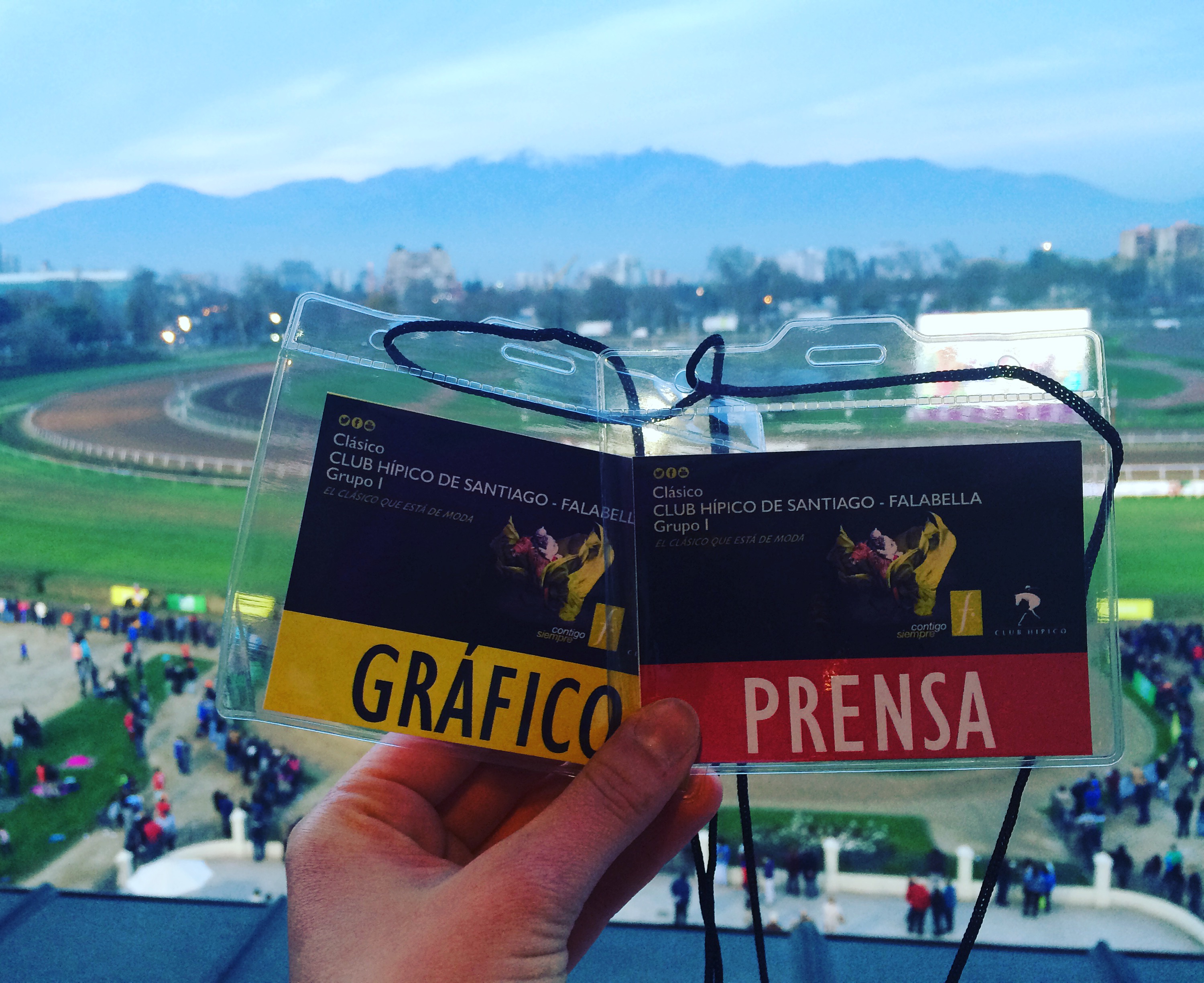 It’s incredible what doors are opened when you reach out to people. The week prior to the race, I spent hours sitting at my host family’s dining room table composing emails in Spanish (with a bit of help from my host mom, to whom I am eternally grateful for her incredible patience) to learn how to obtain press credentials. I was able to make contact with Cristóbal Vargas in marketing and communications at the Club Hípico de Santiago racetrack, who would set me up with a press pass. I was instructed to call him upon my arrival at the track on the day of the race.