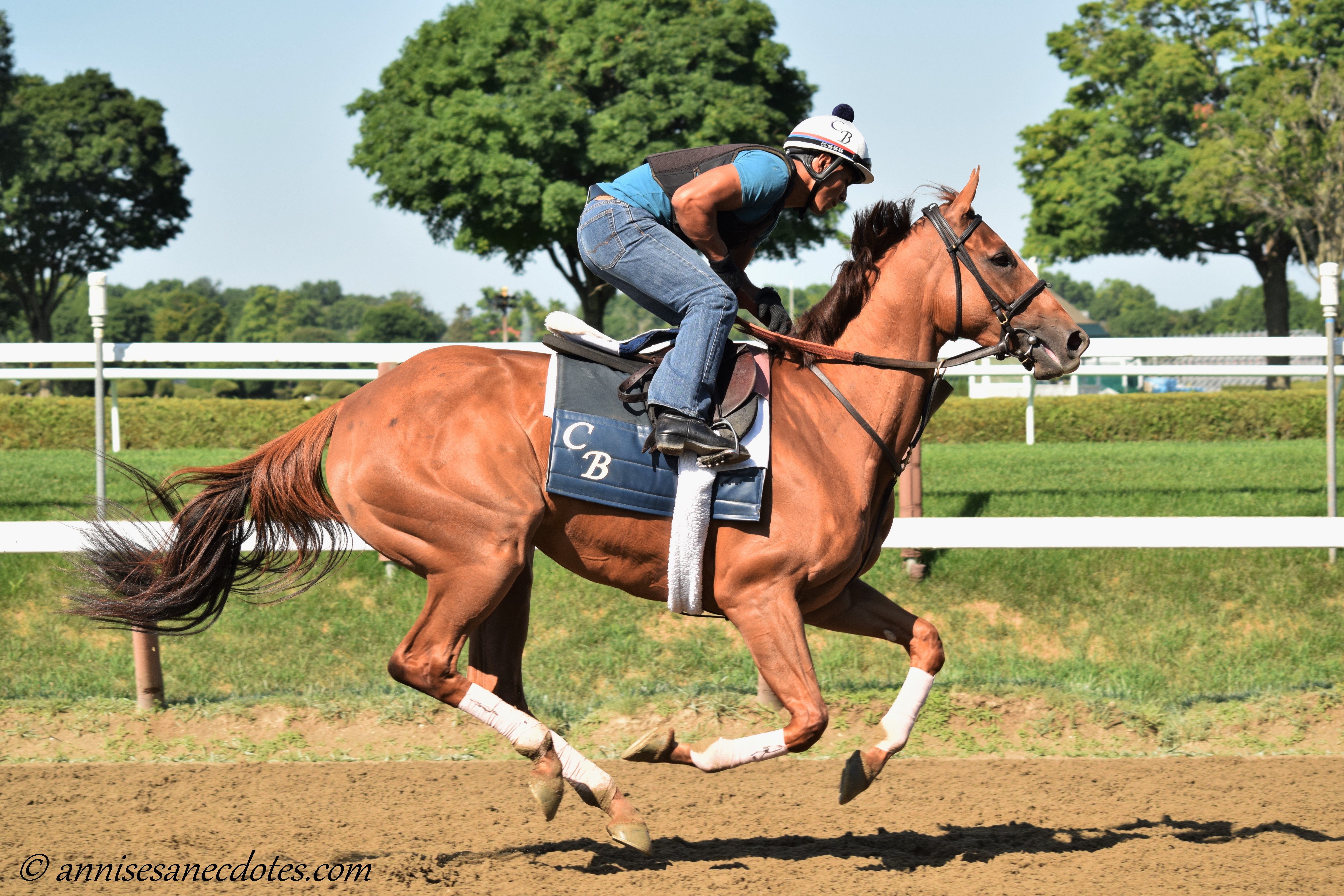 Fast forward to yesterday and today. Within 24 hours I’ve watched Exaggerator (Preakness Stakes winner) train on Clare Court (Google ‘Clare Court Saratoga’ and you won’t be disappointed), Creator (Belmont Stakes winner) being ponied, walked past Keen Ice (who beat American Pharoah last year) chillin in his stall — no pun intended — interviewed Chad Brown and watched my favorite Chilean mare, Dacita, train for this Saturday’s Grade 1 Diana Stakes.