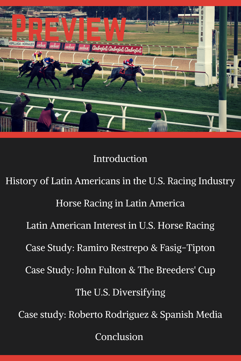 Fast forward to the installments you will read over the coming weeks. A natural combination of my studies at NDSU and in Chile, and interest in Latin American horse racing, was to write about Latin American influence in the United States horse racing industry. As I journeyed through the project, I allowed the following four questions to guide my research on the topic and the three featured case study interviews:
